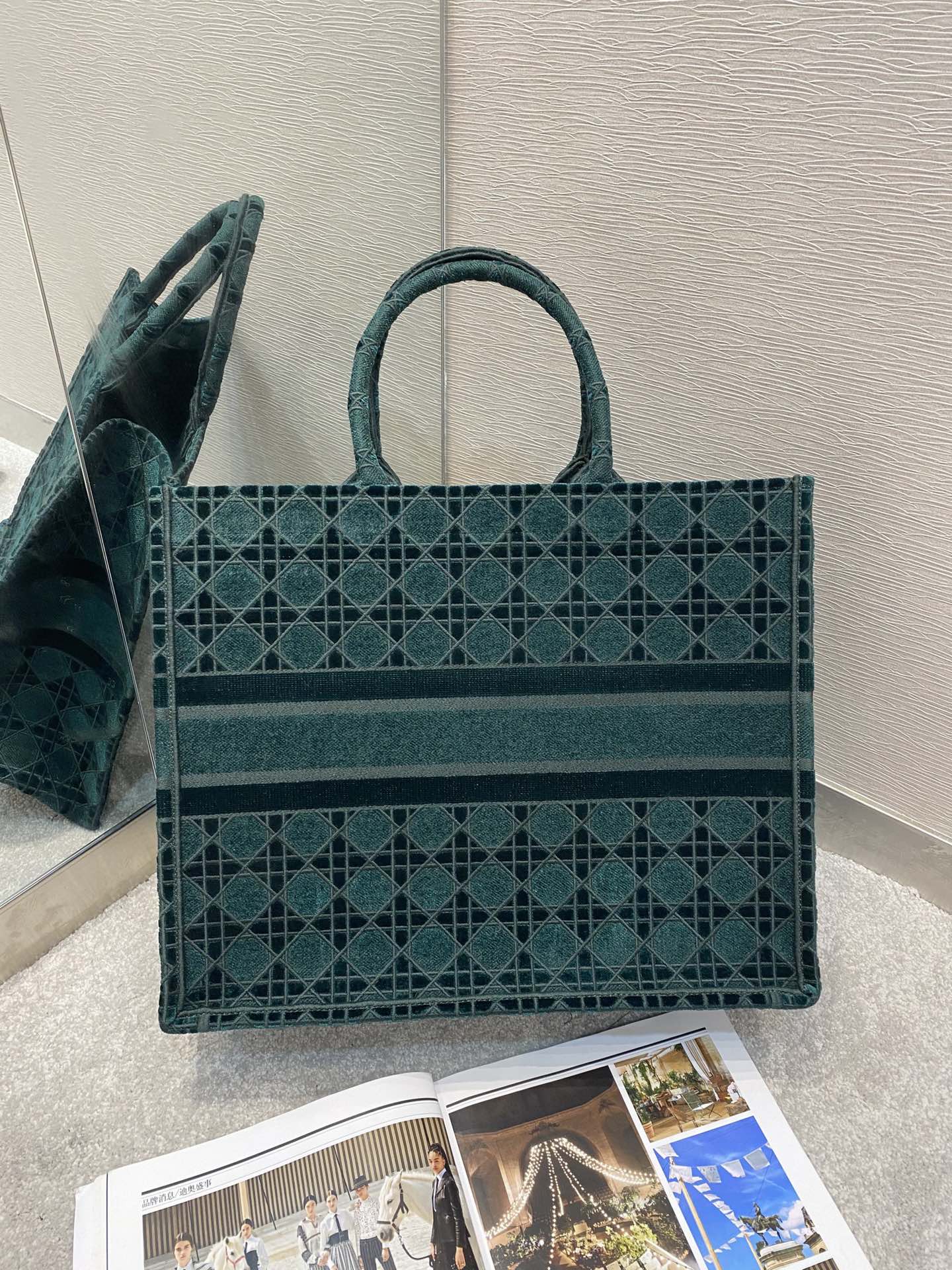 迪奥手袋大号孔雀绿天鹅绒最新格子系列 Dior Book Tote 42CM 小号孔雀绿出货‼️