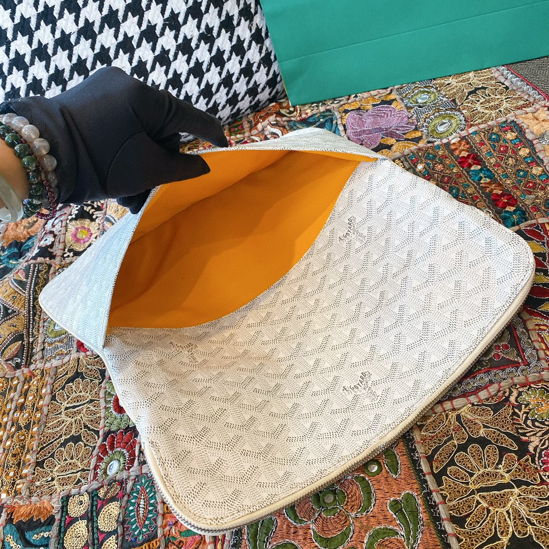 Goyard SAINTE-MARIE 手拿包採用雙面翻蓋設計,小牛皮搭配 適用幹所有風格和場合:皮革翻蓋彰顯優雅與精致 一個大尺寸拉鏈夾層,可容納日常所有必需品。