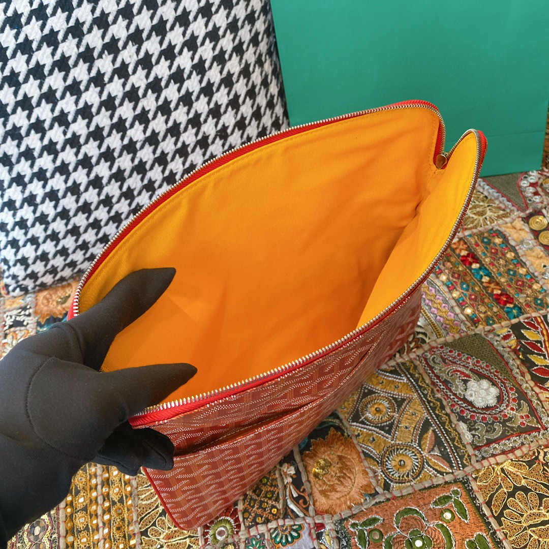 Goyard SAINTE-MARIE 手拿包採用雙面翻蓋設計,小牛皮搭配 適用幹所有風格和場合:皮革翻蓋彰顯優雅與精致 一個大尺寸拉鏈夾層,可容納日常所有必需品。