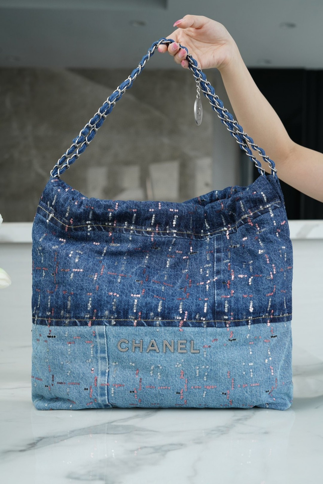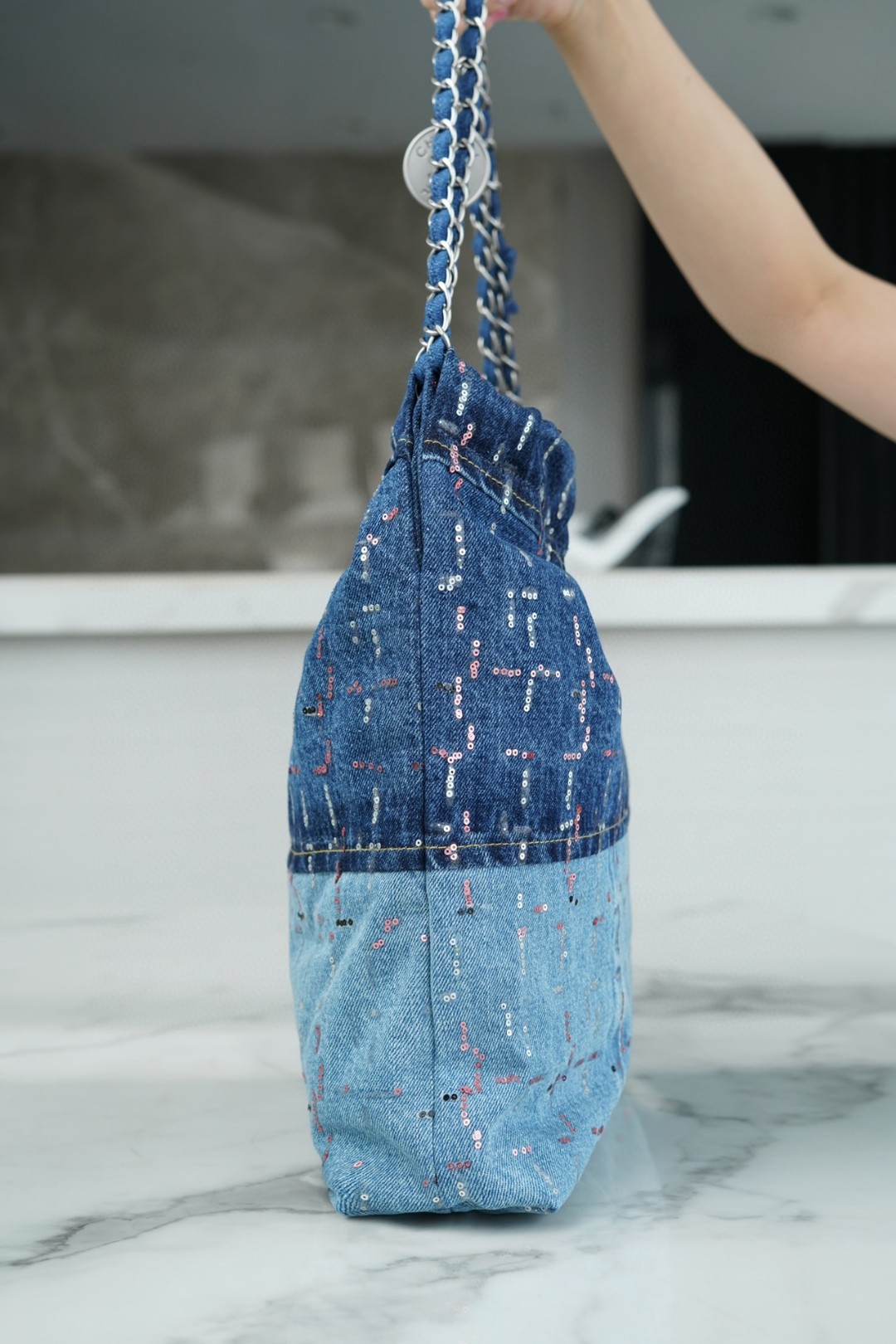CHANEL 23A珠片牛仔拼接 22bag 中號