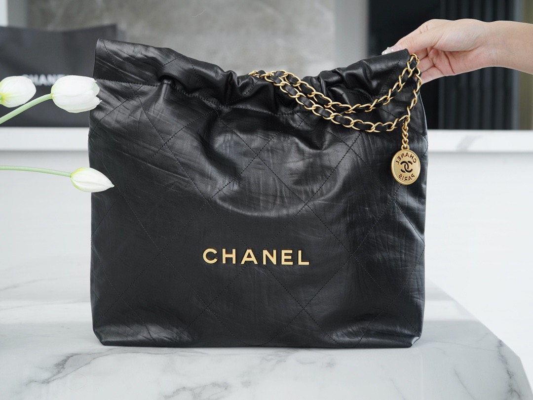 CHANEL 新款 摺紋22手袋 中號 黑色➿正品皮