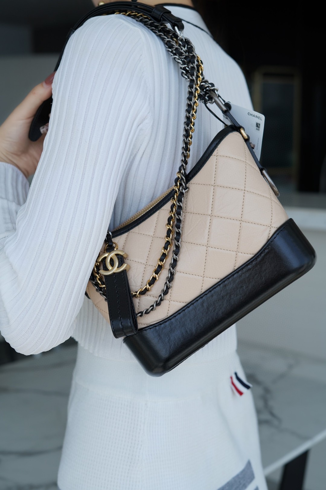 CHANEL Gabrielle經典流浪包 杏黑 小號