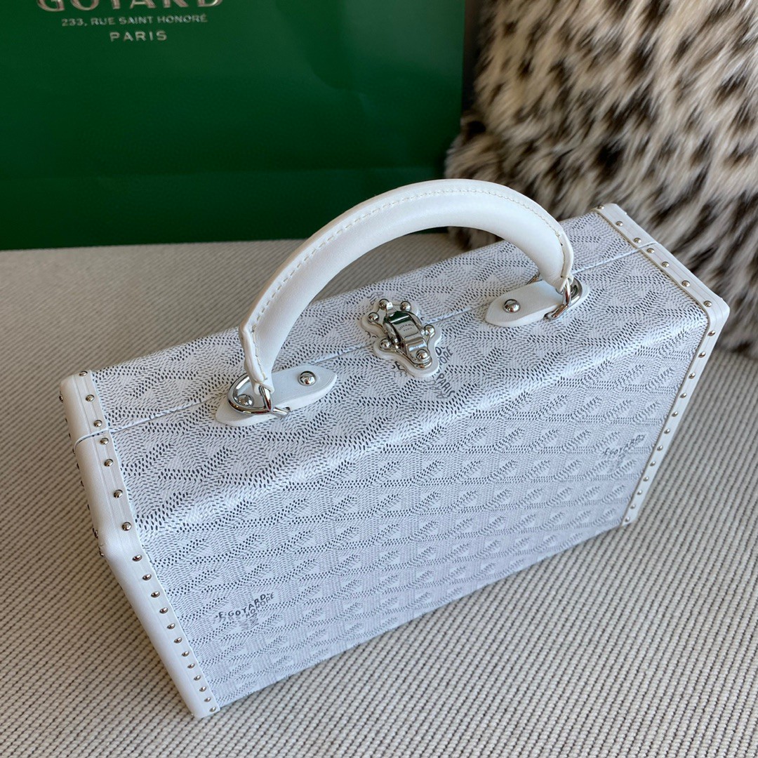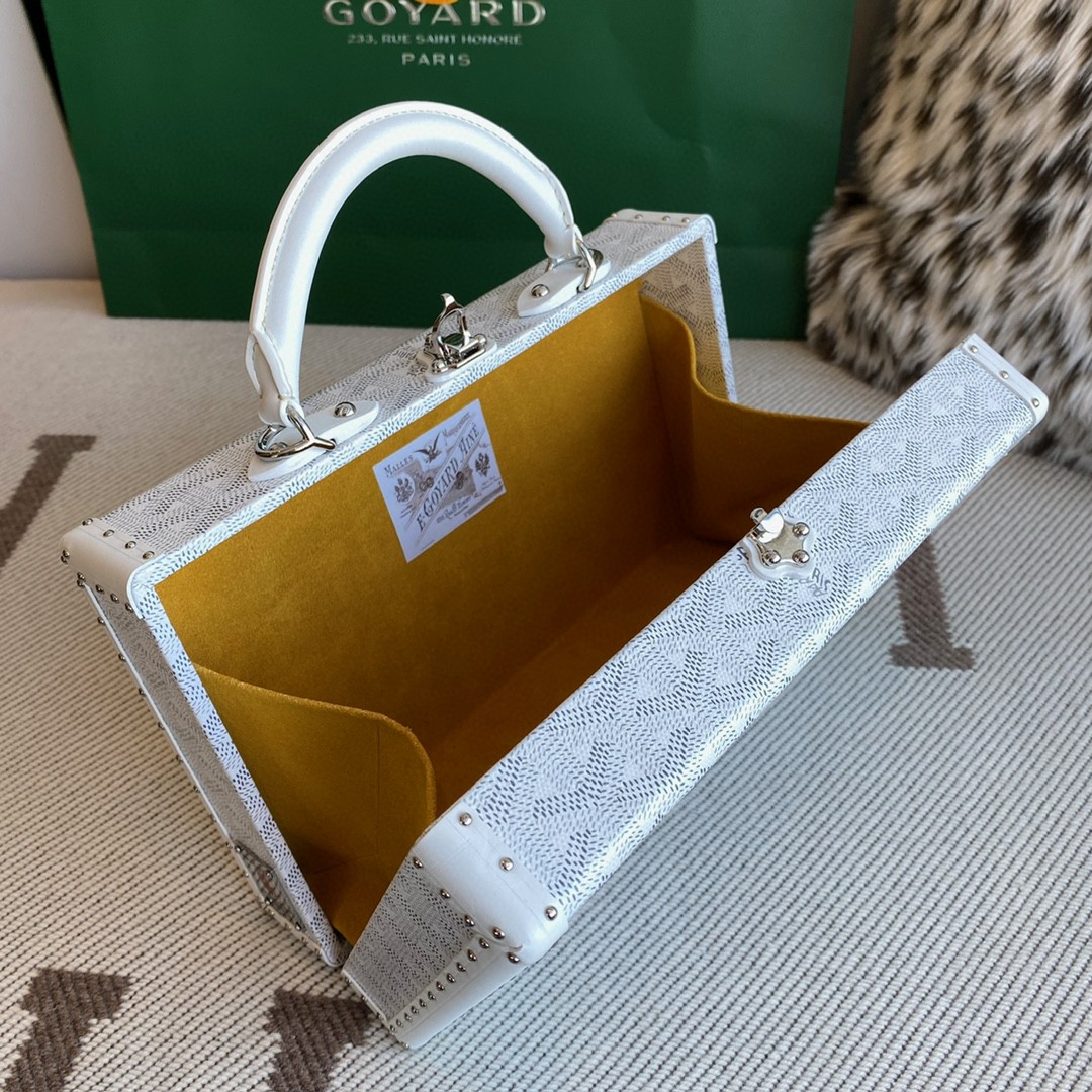 Grand Hôtel 盒子包錶達了對 Goyard 之家珍視的制箱工藝的致敬。這款包包融合了優雅、精致、輕盈的特點,其尺寸足夠安全收納所有日常必需用品。另配一條肩帶可讓它輕鬆駕馭多種攜帶方式。