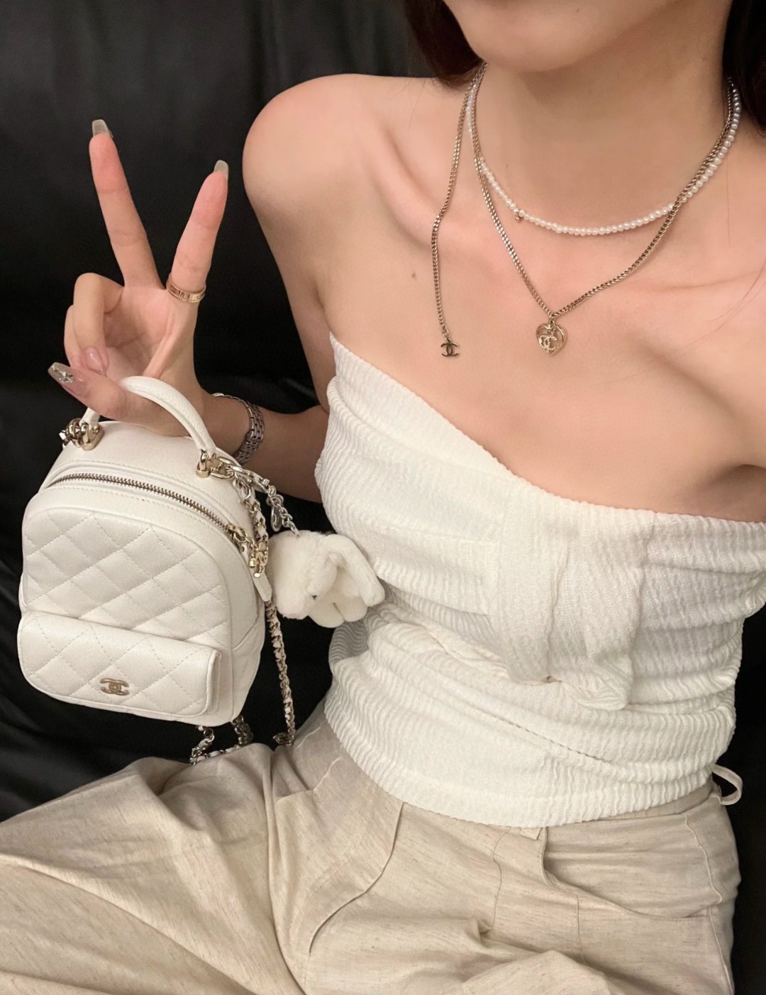 Chanel 24C mini雙肩背包 白色 正品皮
