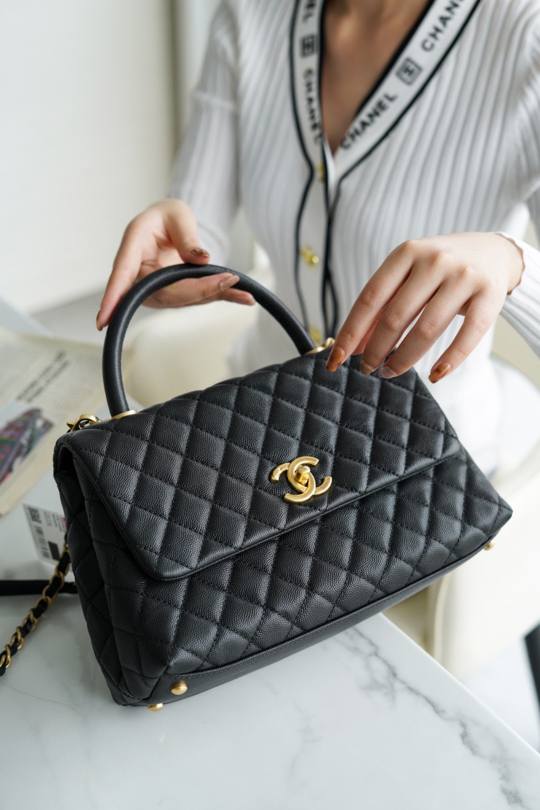 CHANEL Coco handle牛皮手柄 黑色 中號