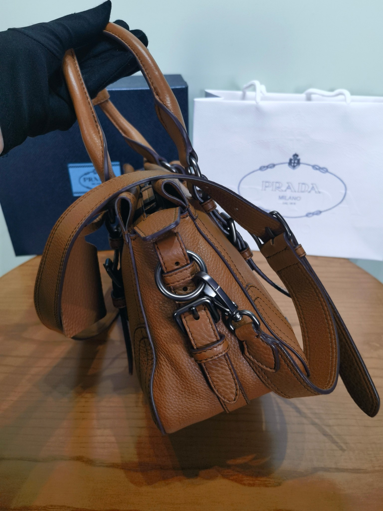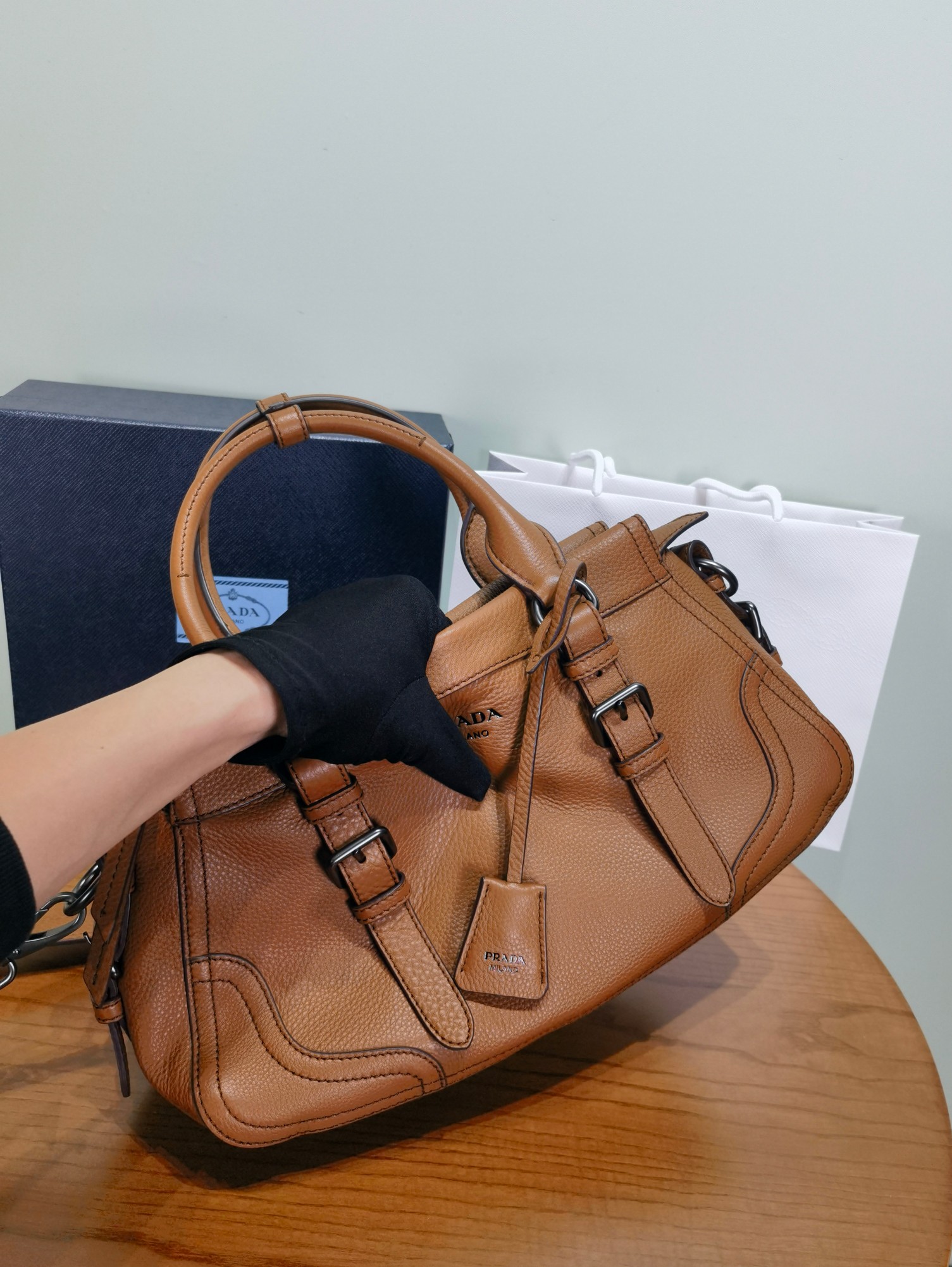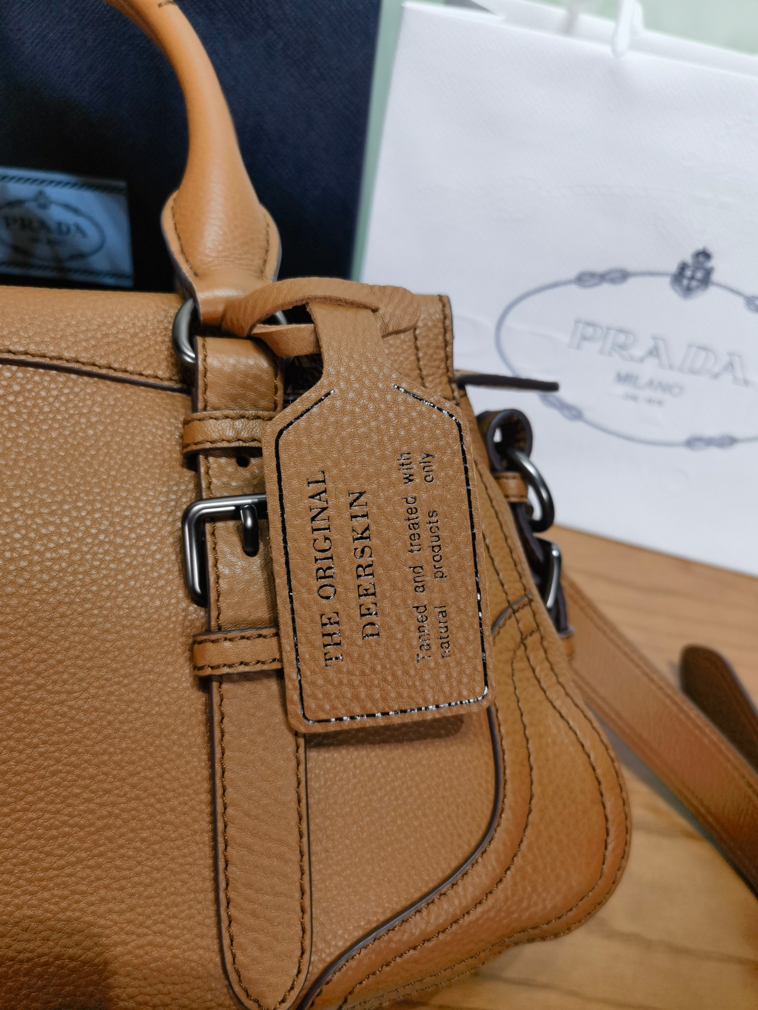 以設計回歸普拉達DNA的根源,喚起旅行主題。這款緊湊多功能的皮革廓形,質地豐富柔軟細緻,配備可拆卸肩帶,可多種方式佩戴。加固的角落,靈感源自旅行包,展現了與傳統工藝和檔案的持續對話。