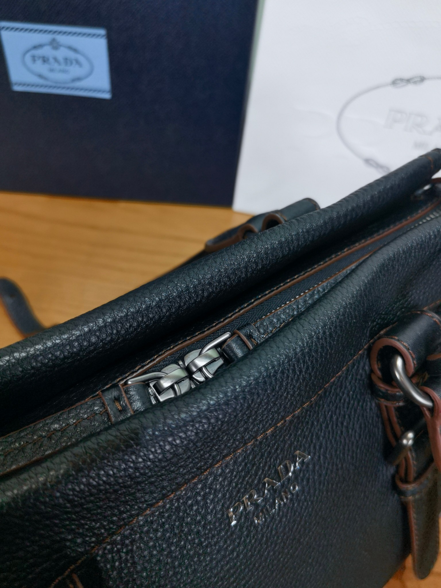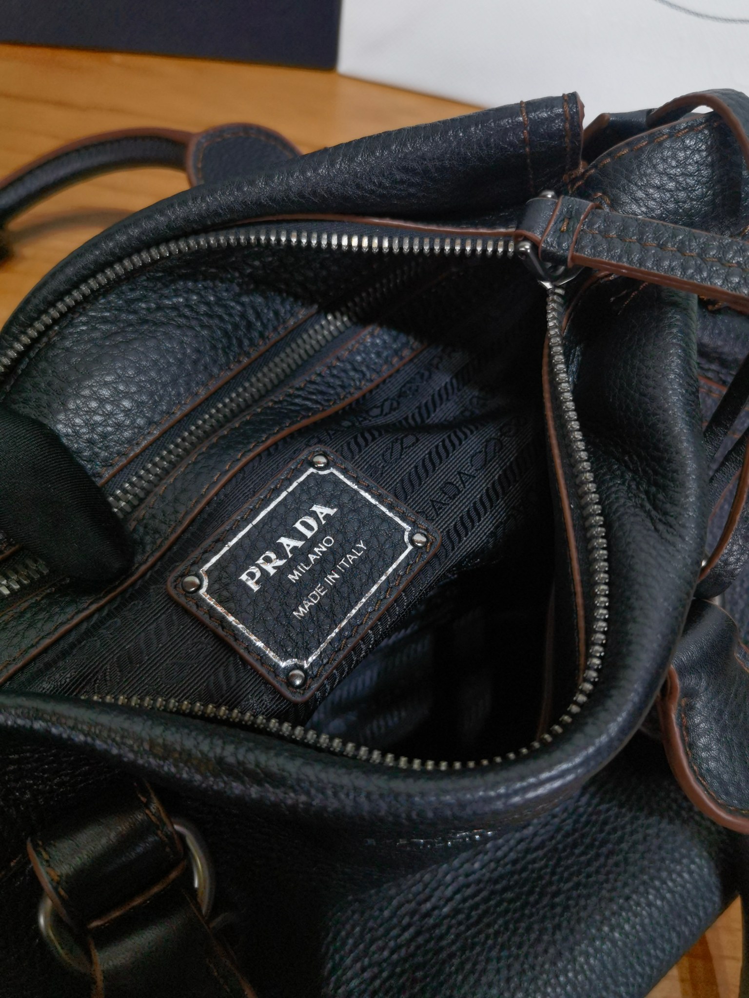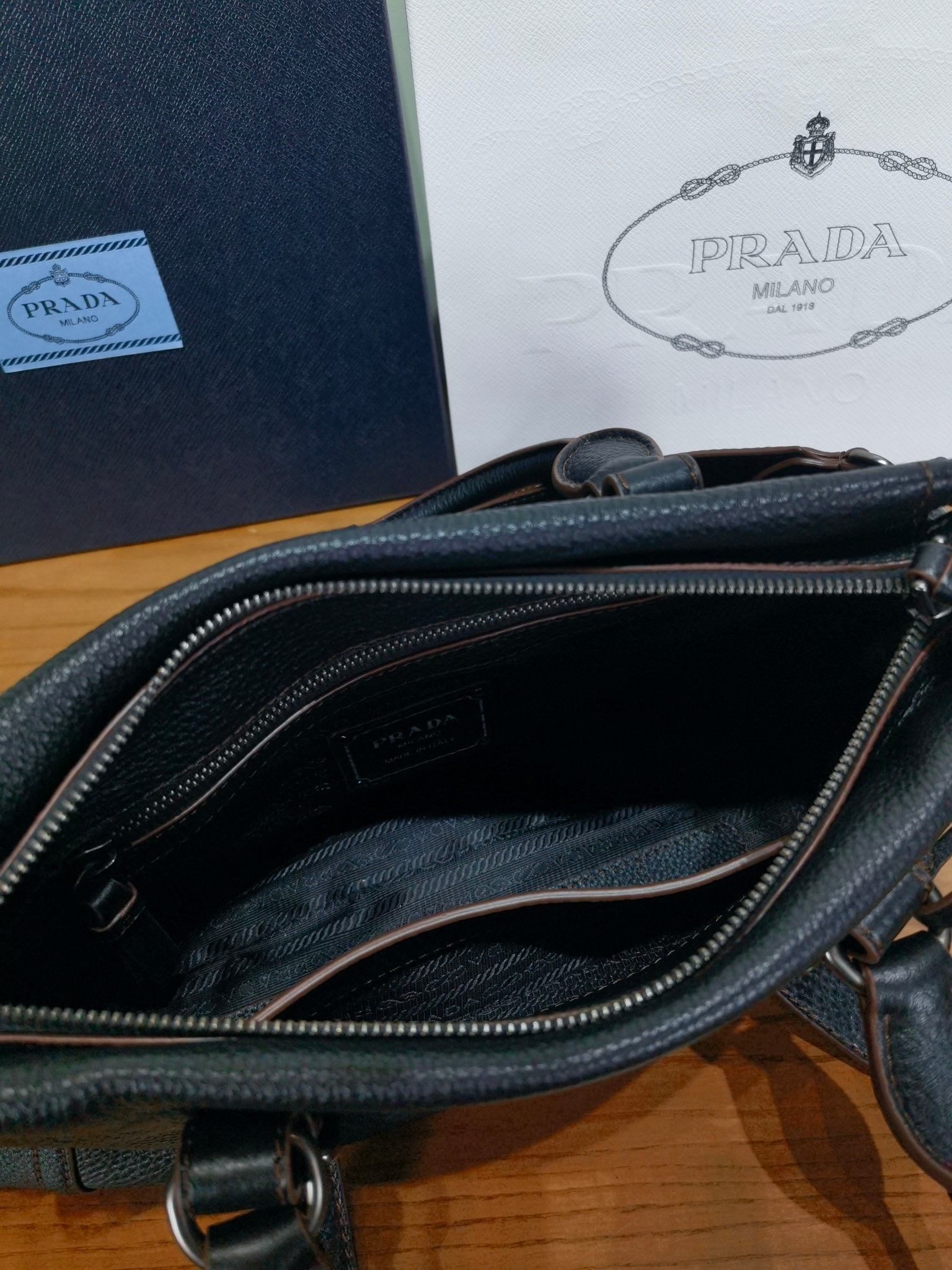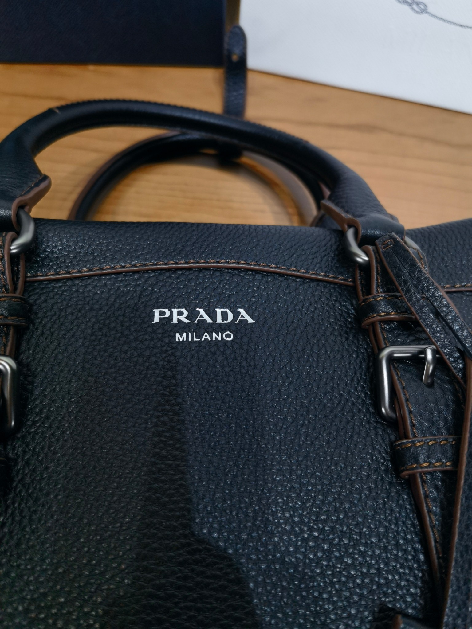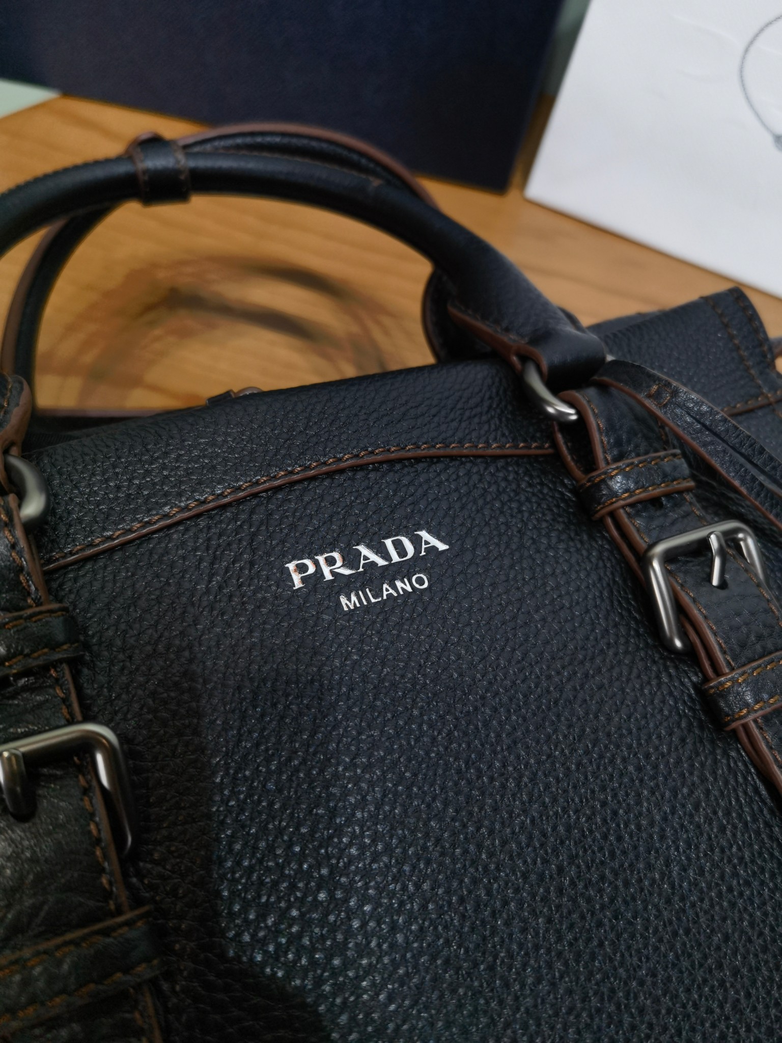 以設計重返Prada DNA的根源,喚起旅行主題。 這款緊湊多功能的皮革廓形,質地豐富柔軟細膩,配有可拆卸肩帶,可多種方式佩戴。 加固的角落,靈感源自旅行包,展現了與傳統工藝和檔案的持續對話