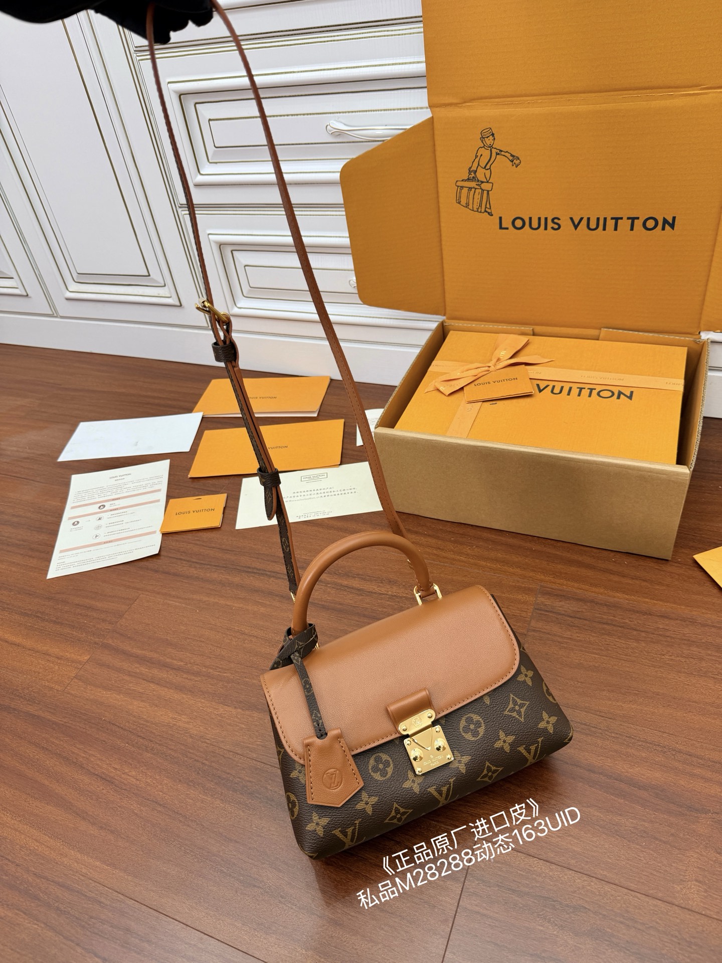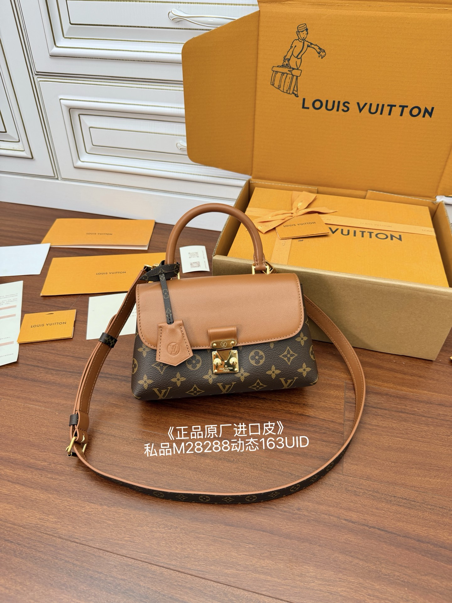 獨家(正品原廠進口皮)首發型號:M28288私品(163動態UID)進口菱形面料(品質和資料第九次再次陞級,專櫃同步,動態電子晶片、禮品袋、保護紙,銅版電子標籤、合格證)皮料是正品代工廠義大利A級樹膏皮(私品)是在於品質、五金、面料、手工、油邊、是A級出品、拍攝圖跟產品一致丶配圖上的全套包裝. 尺寸:24.5x16x8CM